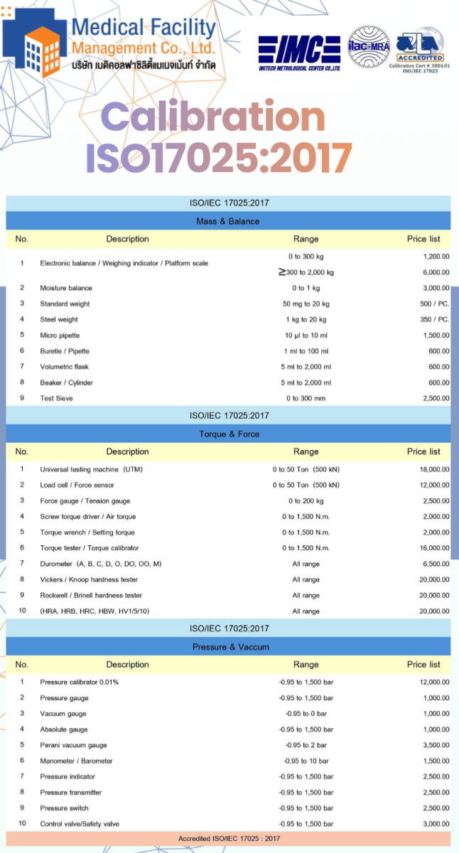 ทางบริษัทฯ ได้รับการรับรอง Accreditation ISO/IEC 17025 : 2017 ทั้งแบบ In-house และ On-site